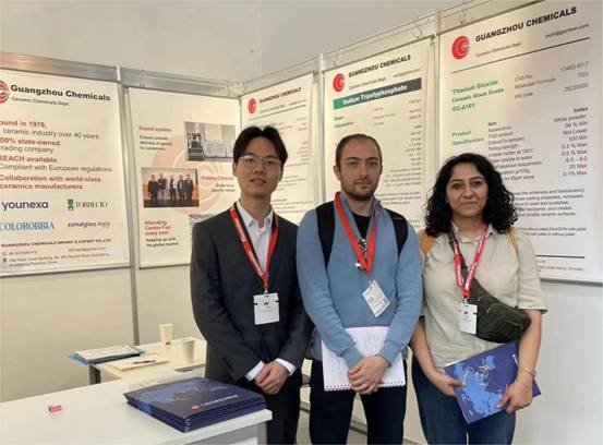At the Ceramics Exhibition in Germany, Guangzhou Chemicals attracted more than 20 professional customers from the European Union, Africa, and Asia with its high-quality raw materials and customized solutions. Through this exhibition, Guangzhou Chemicals discussed industry trends with many international counterparts, provided high-quality solutions to ceramic industry customers, and further consolidated its important position in the ceramic business field.