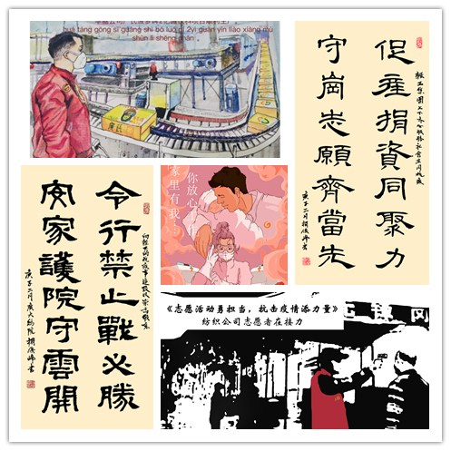 在此期間,廣州輕工集團(tuán)一個(gè)又一個(gè)感人的一線戰(zhàn)“疫”故事溫暖著你我,一個(gè)又一個(gè)奮進(jìn)的復(fù)工復(fù)產(chǎn)事跡振奮著你我。作為廣州輕工集團(tuán)屬下唯一一所以服裝和藝術(shù)為主體的公辦二級(jí)學(xué)院,廣州大學(xué)紡織服裝學(xué)院的師生雖受疫情影響只能宅在家開(kāi)展網(wǎng)上教學(xué),卻以特殊的方式投入到了這場(chǎng)“萬(wàn)眾一心,抗擊疫情”的活動(dòng)中。在學(xué)院黨委的號(hào)召和學(xué)院團(tuán)委的組織下,廣大師生紛紛拿起筆墨紙硯,以真心真情為底色、以水墨丹青當(dāng)載體,用藝術(shù)表現(xiàn)的形式對(duì)身邊的榜樣和感動(dòng)進(jìn)行創(chuàng)作,傳遞滿滿的正能量。